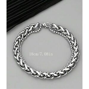 Beautiful double chain fancy stainless steel bracelet that will stand the test of time and not tarnish. Lobster claw clasp and bracelet measures 7.5 inches. Classic timeless style with little effort and can be worn with anything.