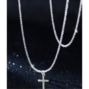 Beautiful double silver chain cross necklace. Measurements in photos. Gorgeous classic style that goes with everything.