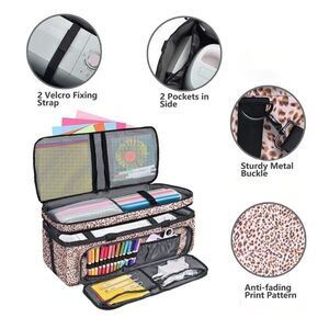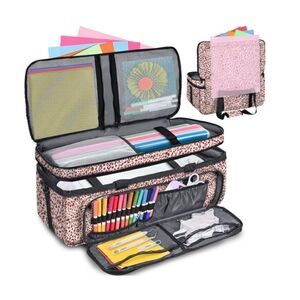 The main compartment is roomy for the Cricut machine, while the top compartment has 4 pockets for Cricut accessories and tools.