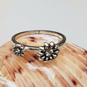 Double Flower Band Ring Silver Boho Jewelry . Flower Ring . Silver Tone . Size 9 . Pre-owned .