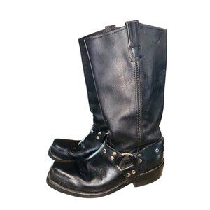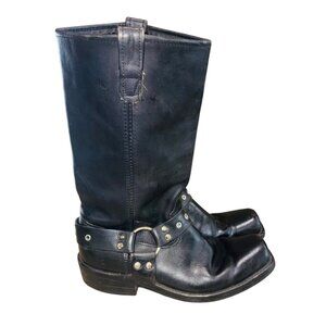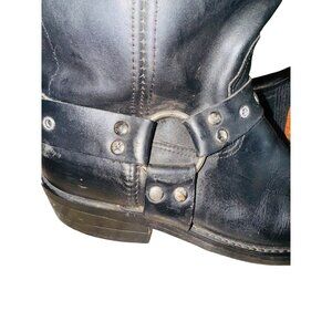These Double-H Boots are crafted for durability and style. The black leather harness provides a classic motorcycle boot appeal, perfect for rugged wear. A sturdy sole and robust construction ensure reliability, making them a practical choice for everyday use.