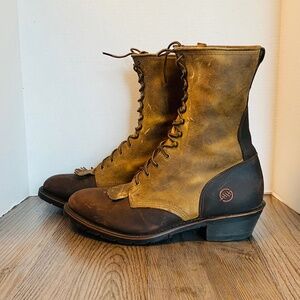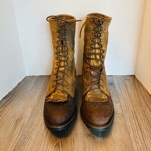Double-H, Men Leather Kiltie Lace Up Packer Roper Mid Calf Boots, 11.5 D. Good condition.