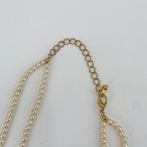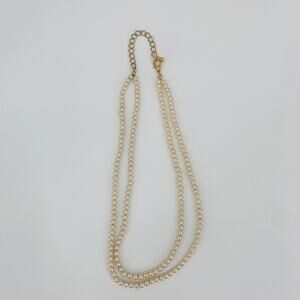 Add a touch of classic elegance to your outfit with this beautiful double pearl necklace! This costume jewelry piece features lustrous faux pearls that create a timeless look.