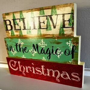 Double-Sided Wood Block Sign | Grateful Thankful Blessed / Believe in Christmas
