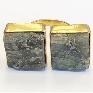 Double Stone Labradorite Open Adjustable Ring - Awesome adjustable statement ring with two square labradorite stones. The stones are roughly the size of a dime.