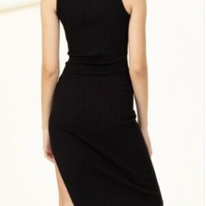 Revolve Double Zero Black Ribbed Sleeveless Side Slit Dress size Small