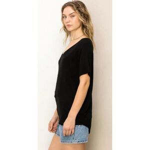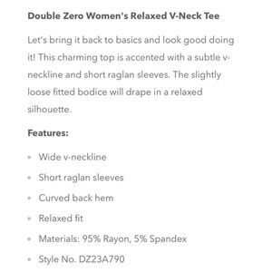 Double Zero Women's Relaxed V Neck T Shirt Rayon Spandex Small