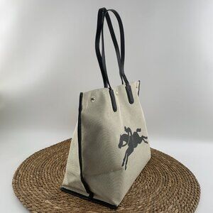 Double-sided tote bag, shopping bag, PVC and leather. CITY signature coated canvas with smooth leather details. Interior zipper pocket. Drawstring closure. Versatile and very stylish, create a unique OOTD look.