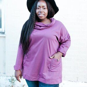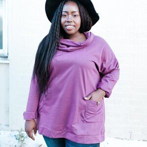 Doublju Plum Cowl Neck Sweater w/ Front Pockets