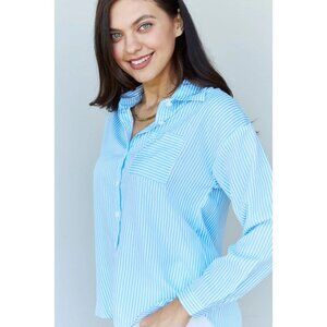 Doublju She Means Business Striped Button Down Shirt Top