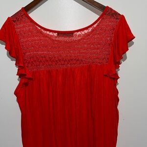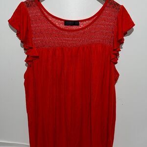Doublju Women's Red Floral Lace Short Flutter Sleeve Pullover Blouse Size 2XL