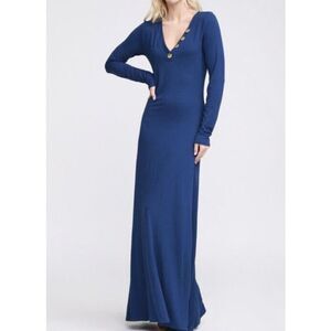 Doublju Women's Banded Button V-Neck Long Sleeve Maxi Dress Size Small.