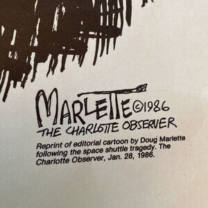 Doug Marlette Weeping Bald Eagle Reprint Editorial Cartoon Jan 28 1986 following the Space Shuttle Challenger tragedy. The Charlotte observer. Condition is "Used".