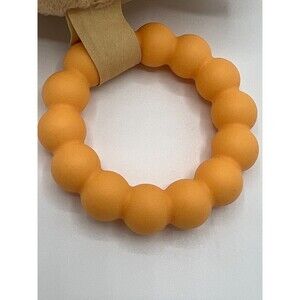 Bring the calm and quiet of a peaceful woodland day to your baby with this soothing Jordan the Fox Teether toy. This sweet Fox character is crafted with cuddly plush materials in an appealing orangey hue. This soft toy features a smooth teether ring made of safe, 100% silicone to bring relief to Baby's teething pains. Friendly and comforting, Jordan's relaxed expression has been detailed in baby-safe embroidery along with a charming mushroom accent in the lower corner. Little ears, a fuzzy brown nose, ad tiny knotted feet add to the charm of this irresistible stuffed toy.