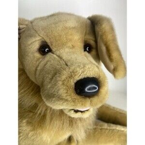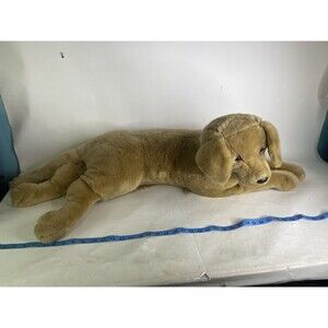 Up for grabs is a preowned Douglas Cuddle Toys Golden Retriever Dog Puppy Large Jumbo Stuffed Plush Brandon. Will come EXACTLY as shown! There are cosmetic discoloration flaws on his paws and one ear as noted in photos! No holes or tears. SOLD AS IS! No other additional accessories or parts are included. Measurements laying flat are included in photos. Please refer to all photos. Ask any questions prior to purchasing! Thanks!