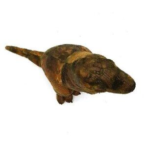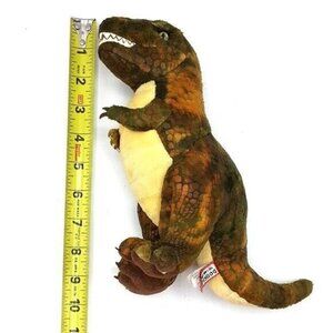 Douglas Cuddle Toys brown brown T Rex dinosaur plush stuffed animal. Beans in bottom. #3782 Good pre-owned condition with no stains or tears. Please see last picture for damaged right hand claw paw.