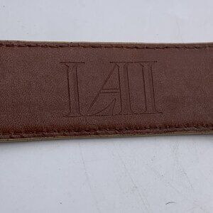 This Douglas Magnus 4-piece sterling silver buckle set comes attached to an IAI brand boxcalf leather belt (size 38). The belt is in very good condition, showing minimal wear. The sterling silver buckle set has light scuffs and surface scratches consistent with normal use—please see all photos for condition details.