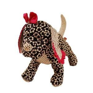 Douglas Quilted Floral Black Pink Fabric Plush Dog Stuffed Cuddle Toy 8.5 Tall