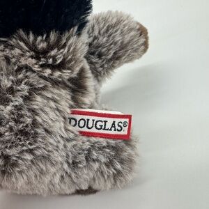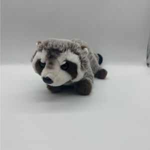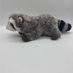 Douglas Ringo Raccoon Plush. 10” cuddly raccoon stuffed animal. He is crafted with grey and brown plush with amber colored eyes and a realistic face mask.