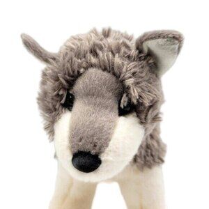 Douglas Cuddle Toys plush gray cream 11" long standing wolf Ashes #4036 stuffed animal. Excellent pre-owned condition with no stains or tears.
