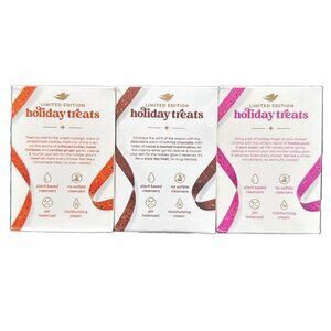 A limited edition variety pack of Dove Holiday Treats Beauty Bars, perfect for adding a touch of festive cheer to your daily skincare routine. This set includes three unique scents: Gingerbread Delight, Hot Cocoa Swirl, and Frosted Plum Berry, each offering a luxurious and moisturizing cleanse. These beauty bars are made with plant-based cleansers and a pH-balanced formula, ensuring gentle care for your skin. The rich, creamy lather leaves your skin feeling soft, smooth, and nourished. Ideal for a pampering self-care session during the holiday season or as a thoughtful gift for loved ones.