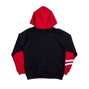 Two Toned Split Hood and Sleeves with Contrast Stripes on Right Sleeve.