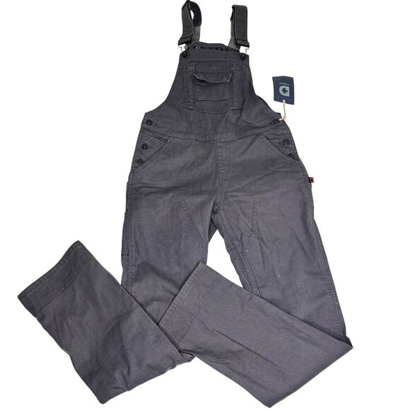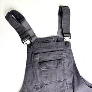 Dovetail Workwear Womens Freshley Overall Gray Stretch Canvas have ample pockets and close with buttons on each side and adjustable straps.