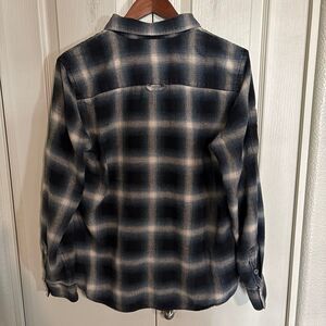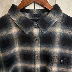Dovetail Workwear Women’s Large Flannel Shirt Gray Blue Tan Plaid Button Up