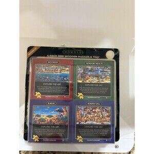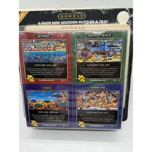 Dowdle Set 4-Pack Beaches of Mini Wooden Puzzles & Tray New And Sealed.