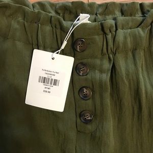 New with tags super cute pants! 100% polyester, but feels very much like cotton. Olive color!