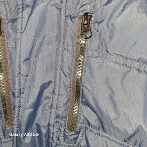 Down Filled Hawke & Co Mens Blue Puffer Jacket With Zipper & Button Closure Hood
