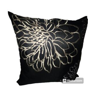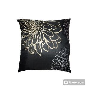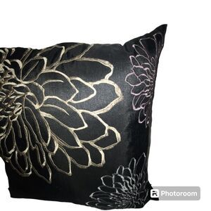 Down Filled Throw Pillow Gold Silver Pink Embroidered Floral Print On Bl…