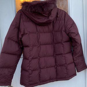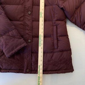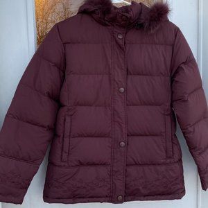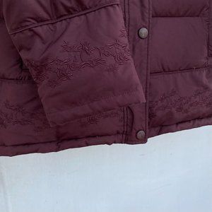 Down Puffer Jacket Maroon Burgundy Embroidered Coat with Fur Trim