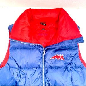 Stay warm and stylish with this blue and red puffer vest. By Eqiline Eliot men’s vest Maide with down to keep you cozy warm.Perfect for outdoor adventures.