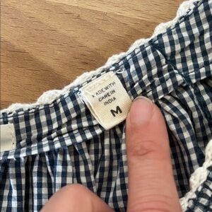 Super sought after Tennessee blouse from Doen. Sized M, but ca fit XS-L. Depending on desired fit. Yes, it’s oversized. I wear XS and it did not drop off my shoulders but in the end a bit too oversized for my liking. Color is navy and white. Will steam before shipping. Excellent condition. Price is negotiable but relatively firm as these tops sell $$$