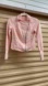 This Halston Heritage moto jacket in a soft pink hue features an asymmetrical front zipper and structured seaming for a flattering fit. The smooth fabric and tailored shape offer a modern twist on a classic style, making it a versatile addition to any wardrobe.
