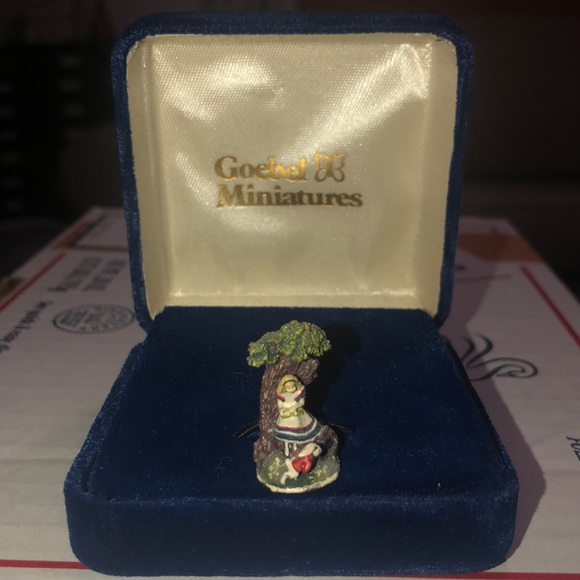 From the Alice in Wonderland Collection: Goebel Miniature “Down the Rabbit Hole” About 3/4 inch tall, beautifully detailed miniature. Limited Edition of 5,000. Year of Issue: 1983. Materials Used: Handpainted Bronze