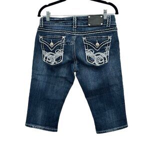 DownEast Dark Wash Distressed Embellished Bermuda Shorts Size 30