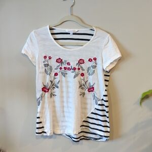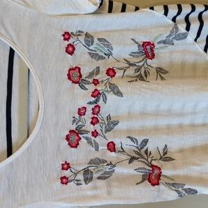 Excellent condition cotton shirt with floral embroidery on the front and black stripes on back. relaxed fit.