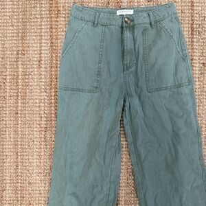 Chic DownEast trousers in olive green. Includes button closure and belt loops.