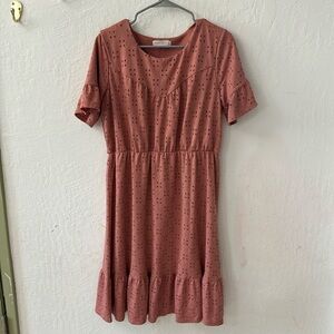 DownEast Pink Eyelet Flutter Sleeve Lined Midi Dress Size Large