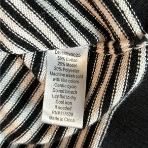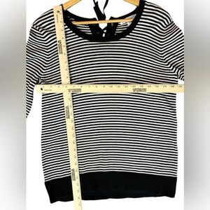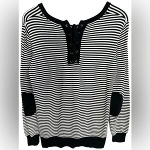 DownEast Women’s Black White Striped Lace Back Elbow Patch Nautical Sweater Med