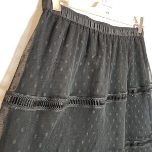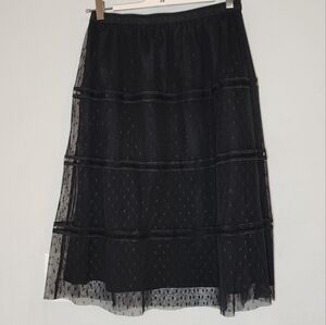 Downeast Mesh Overlay Polka Dot Lace Inset Pull On Skirt Size Small
