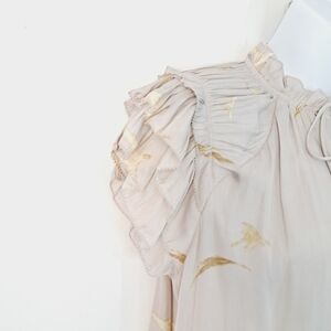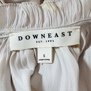 Downeast Sliky Light Gray Abstract Print Ruffle Cap Sleeve Blouse Size Small