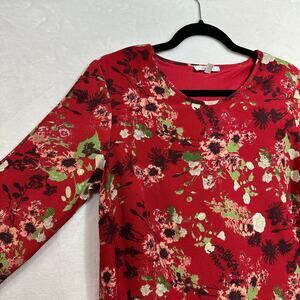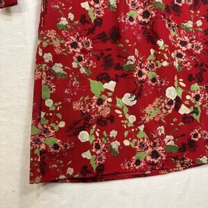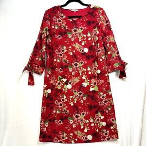 Downeast Small Red Floral Midi Sheath 3/4 Designer Dress Pockets Valentine's