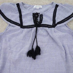 Downeast Top Women's Small Blue Striped Cape Sleeve Tasseled Boho