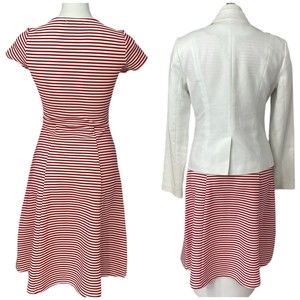 Downeast Women Dress White Blazer Combo Size Small Red Stripe A Line Lot of 2