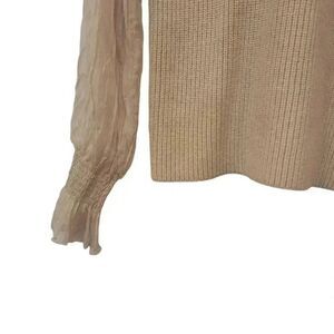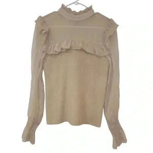 Downeast Women's Beige Acrylic/Poly/Nylon Sunny Day Chic Ruffle Trim Knit Top EUC sz S