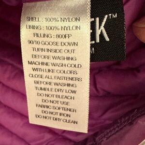 Downtek fuchsia colored water repellant lightweight down puffer vest with elastic on the armholes and zippered side pockets. This vest is super lightweight yet provides core warmth - perfect layering piece for frigid days or on its own when the temperatures rise. Rip cord to cinch the hemline, and the collar is high for warmth. Size extra small (XS) and should fit sizes 0 and 2, it's a bit snug for size 4. No stains, tears, or noticeable imperfections - very good preowned condition.