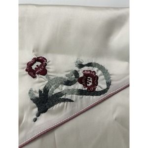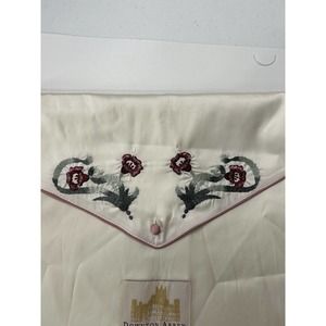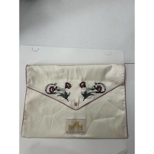 Downton Abbey Beige Satin Embroidered Button Close Large Pouch Makeup Jewelry. Pre owned. No stains. No tears. No holes. Approximate measurements: